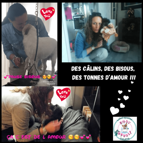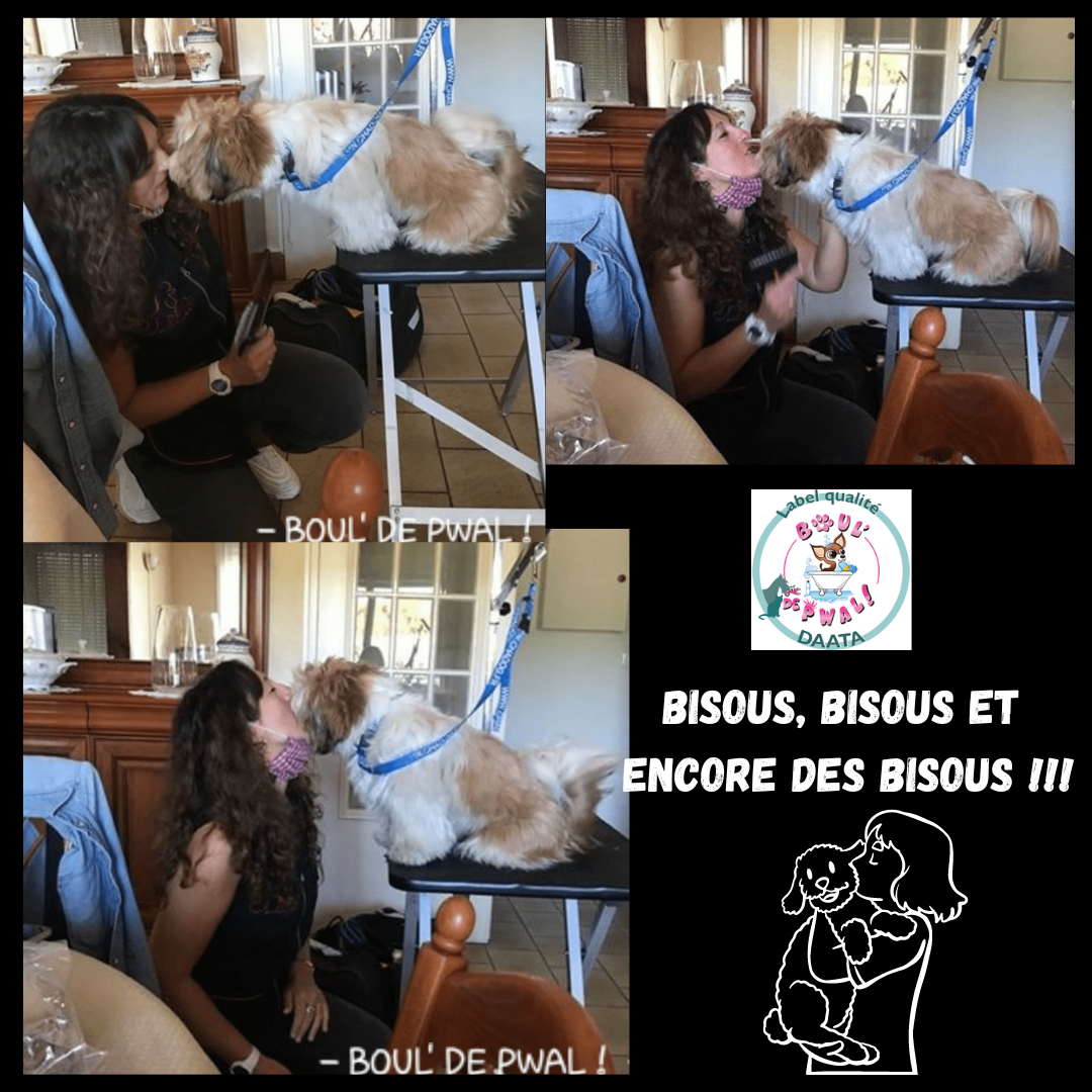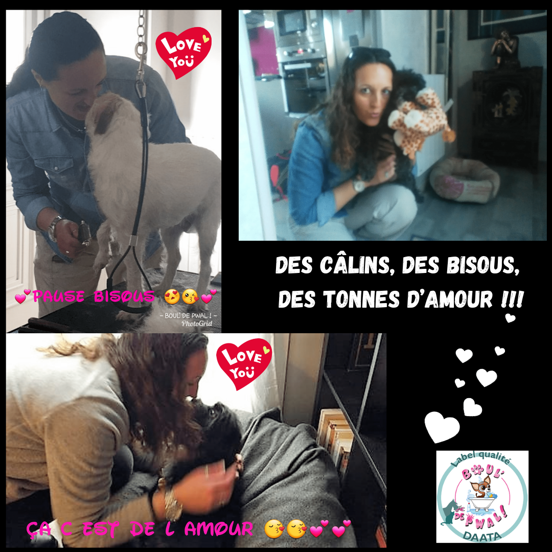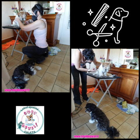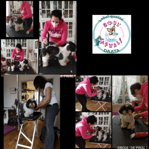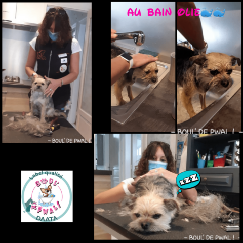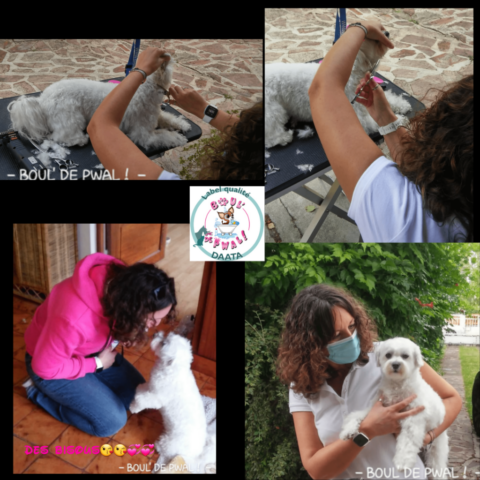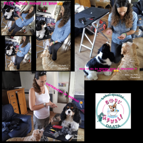 Les photos parlent plus que des mots… Voici un petit échantillon des séances de toilettage : entre la distribution de bisous, de câlins, les encouragements, les friandises et les séances photos vous pouvez voir que le toilettage peut être aussi un moment agréable pour les loulous 🙂