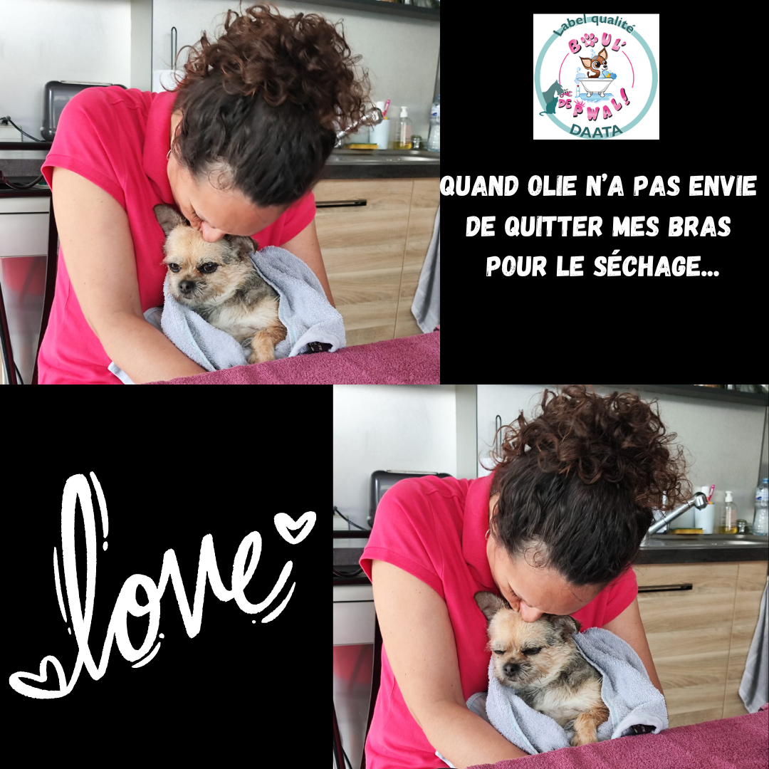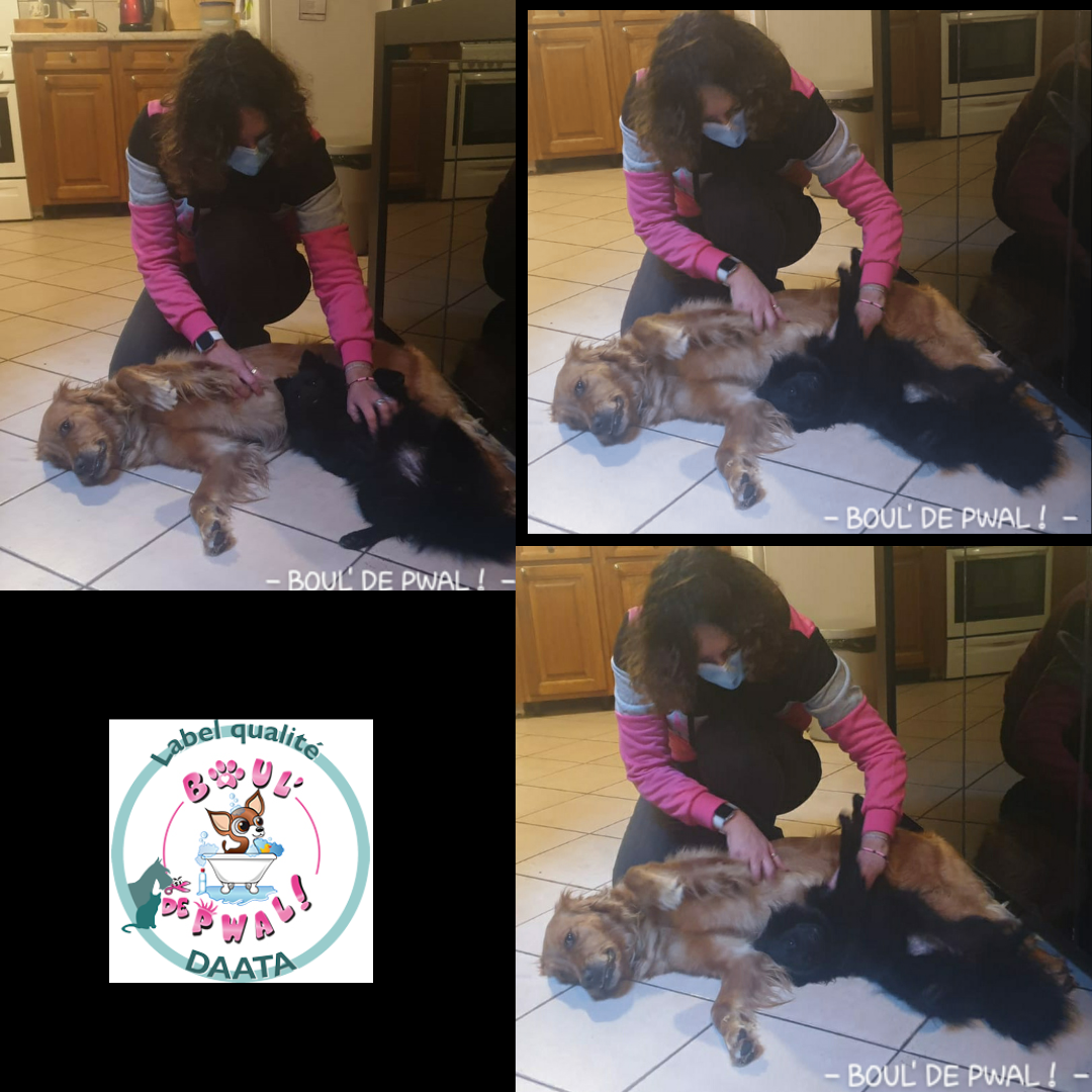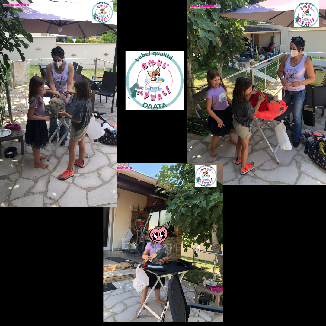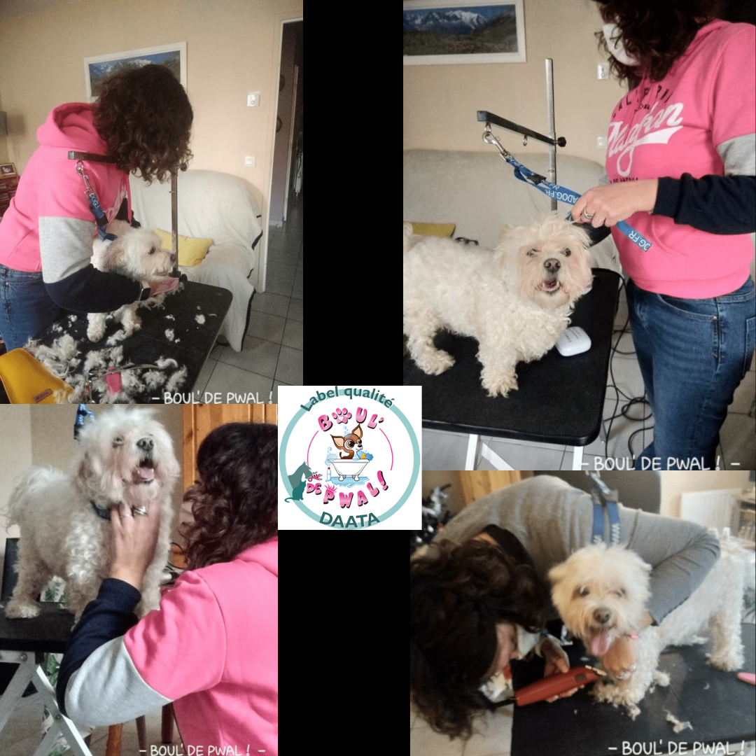 Les photos parlent plus que des mots… Voici un petit échantillon des séances de toilettage : entre la distribution de bisous, de câlins, les encouragements, les friandises et les séances photos vous pouvez voir que le toilettage peut être aussi un moment agréable pour les loulous 🙂