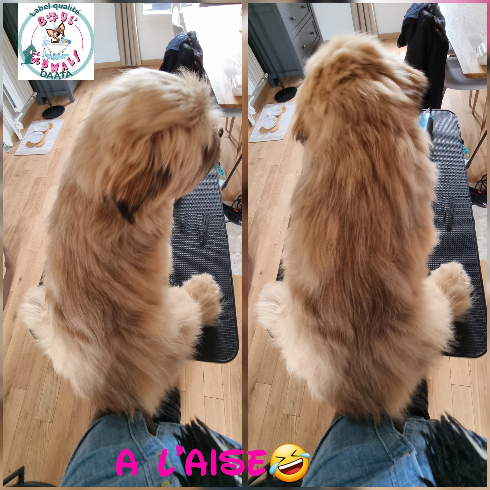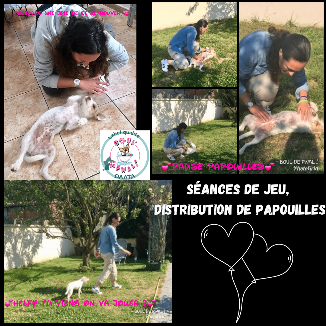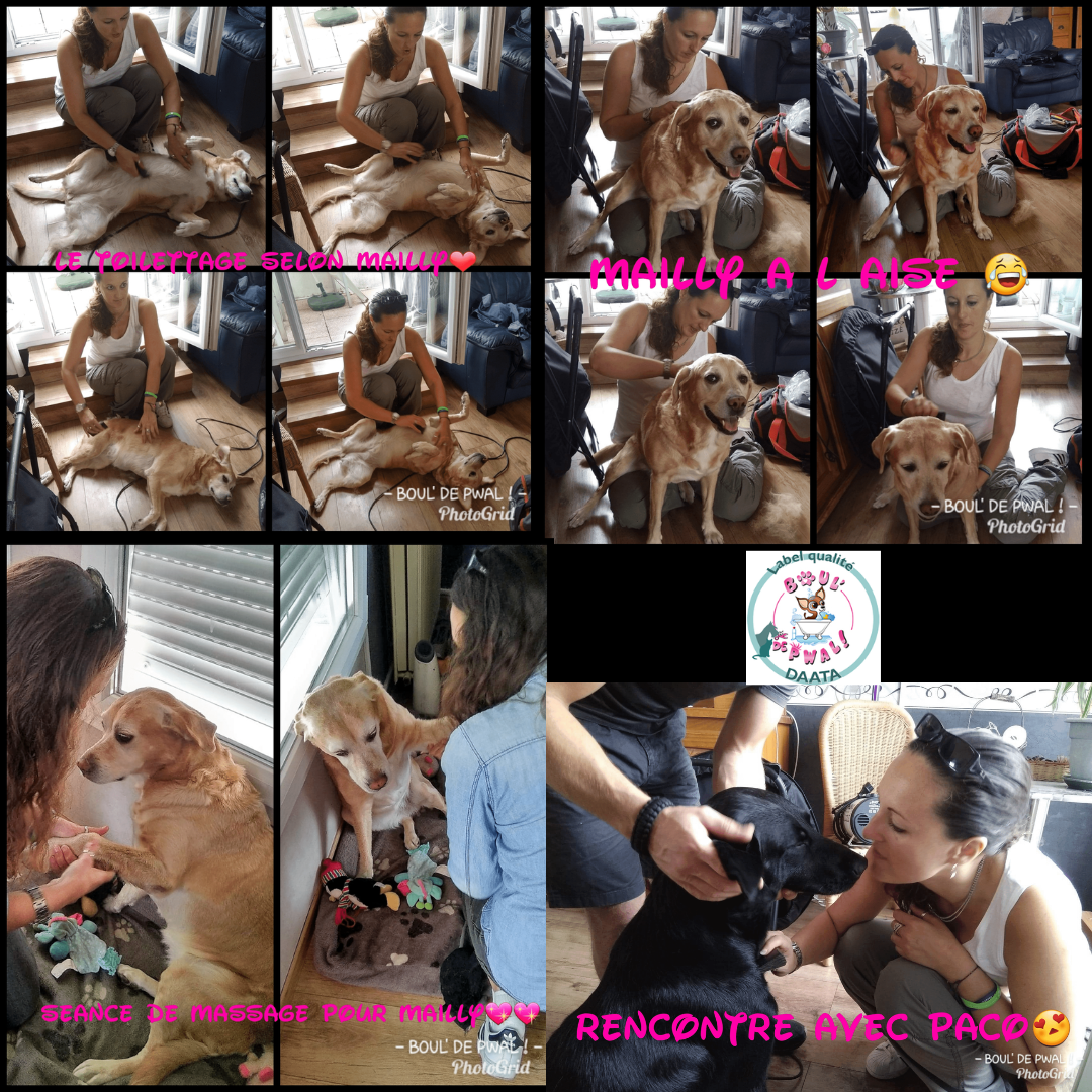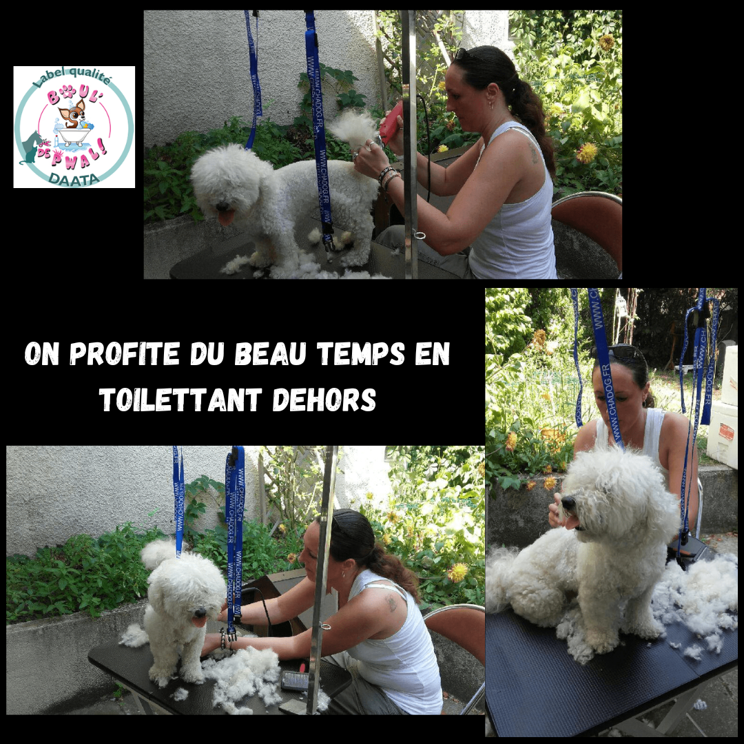 Les photos parlent plus que des mots… Voici un petit échantillon des séances de toilettage : entre la distribution de bisous, de câlins, les encouragements, les friandises et les séances photos vous pouvez voir que le toilettage peut être aussi un moment agréable pour les loulous 🙂